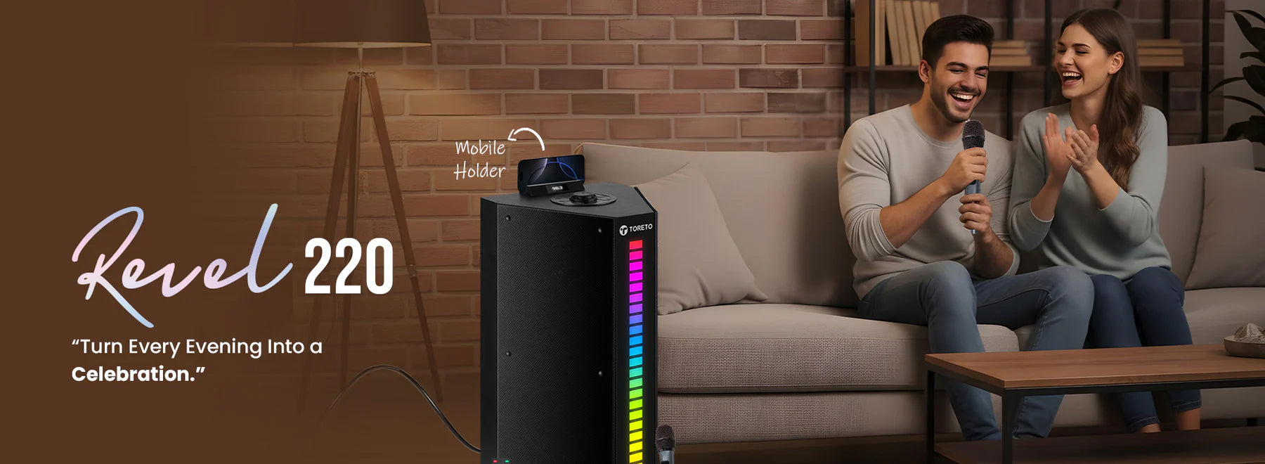 The Toreto Revel 220 Bluetooth speaker is the ultimate choice for anyone who values music. With 220W of power, deep bass, Bluetooth 5.3, and a wireless mic, it turns ordinary moments into unforgettable celebrations. From festive beats to soulful melodies, it adapts to every mood.
