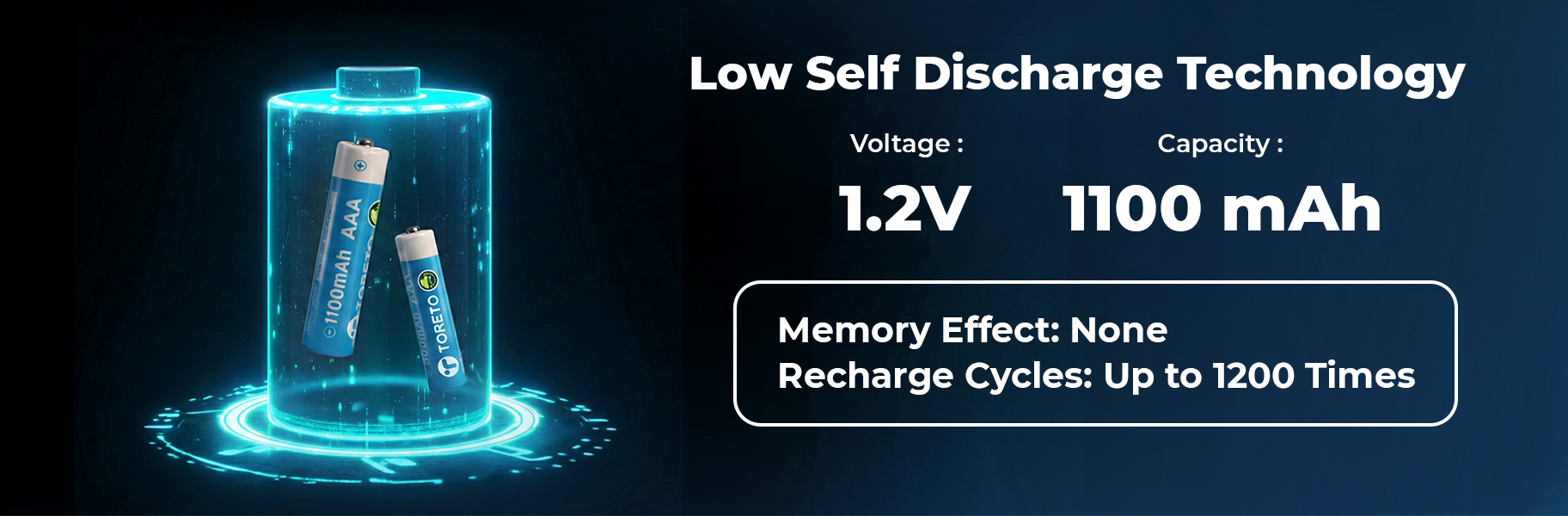 Sustainable 1100mAh power with 1,200+ charges. Reliable, low-discharge 1.2V batteries for all your high and low-drain devices.
