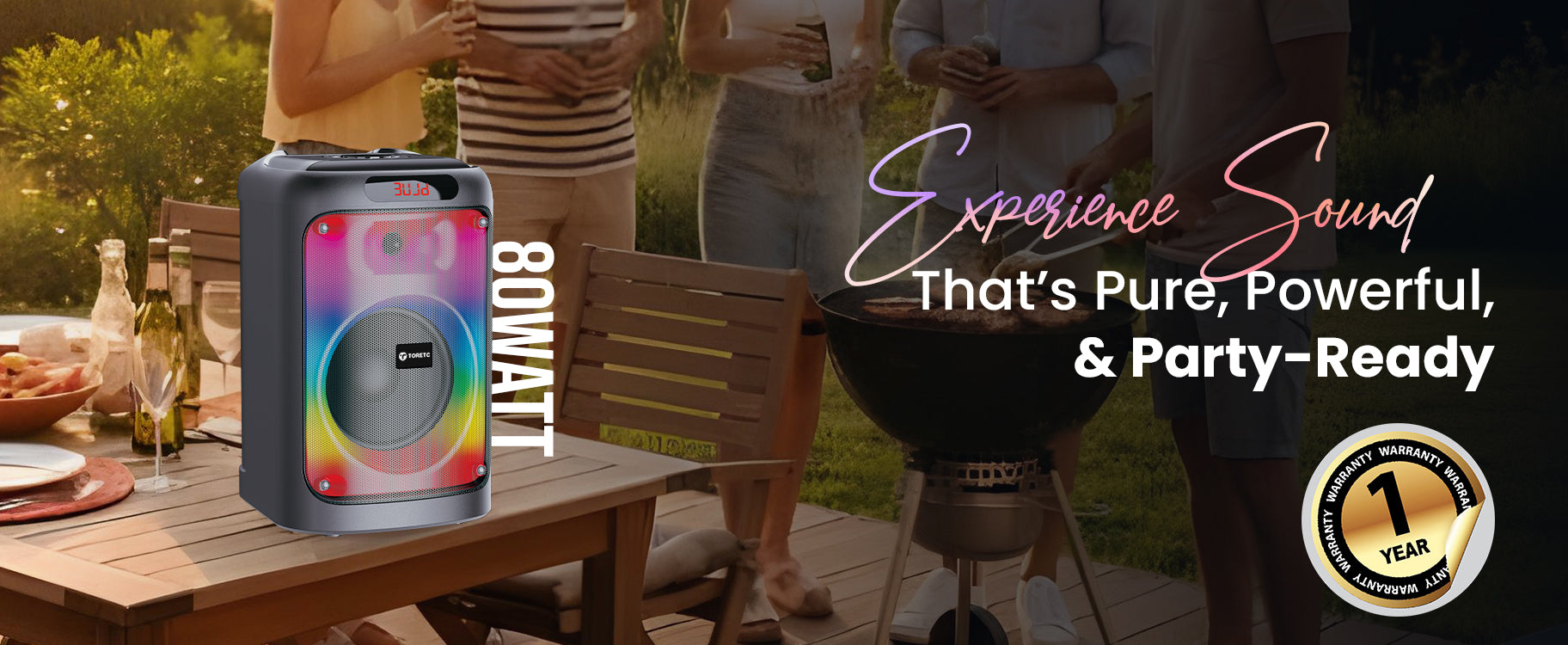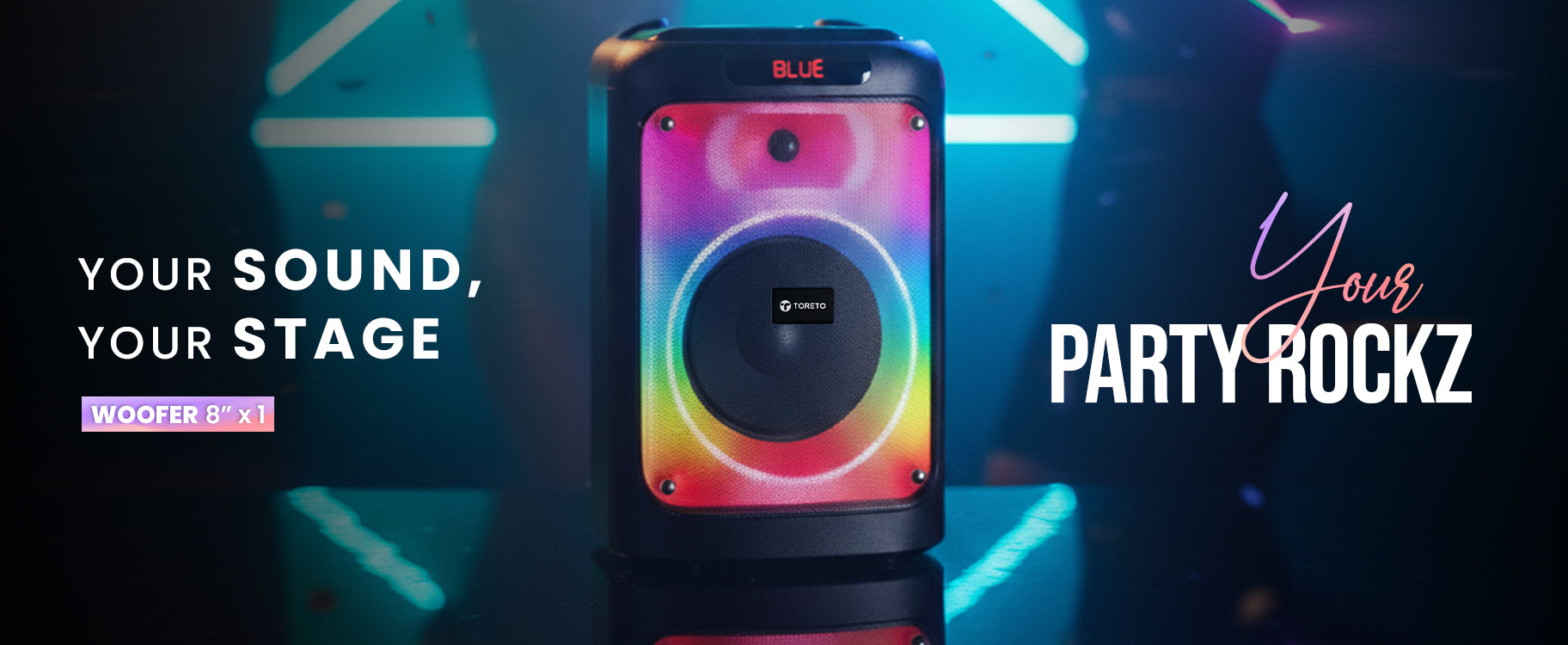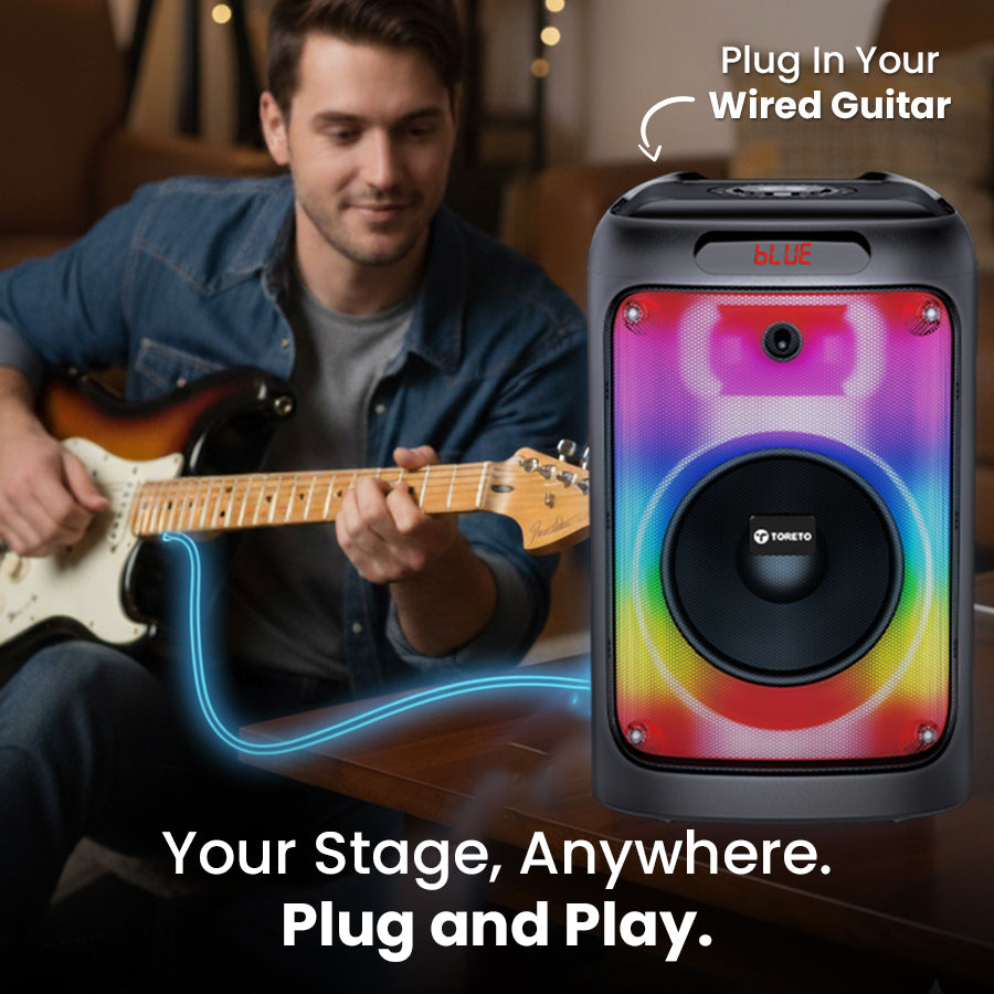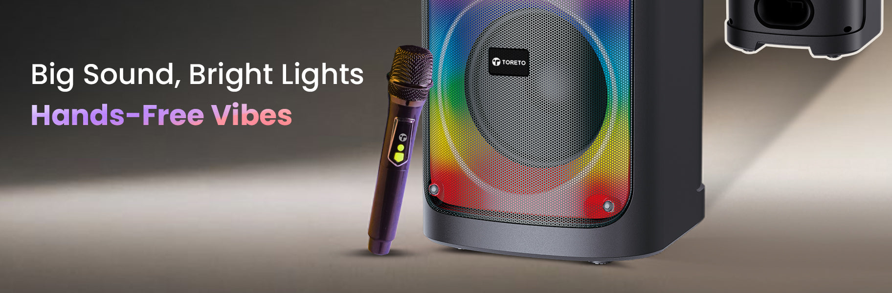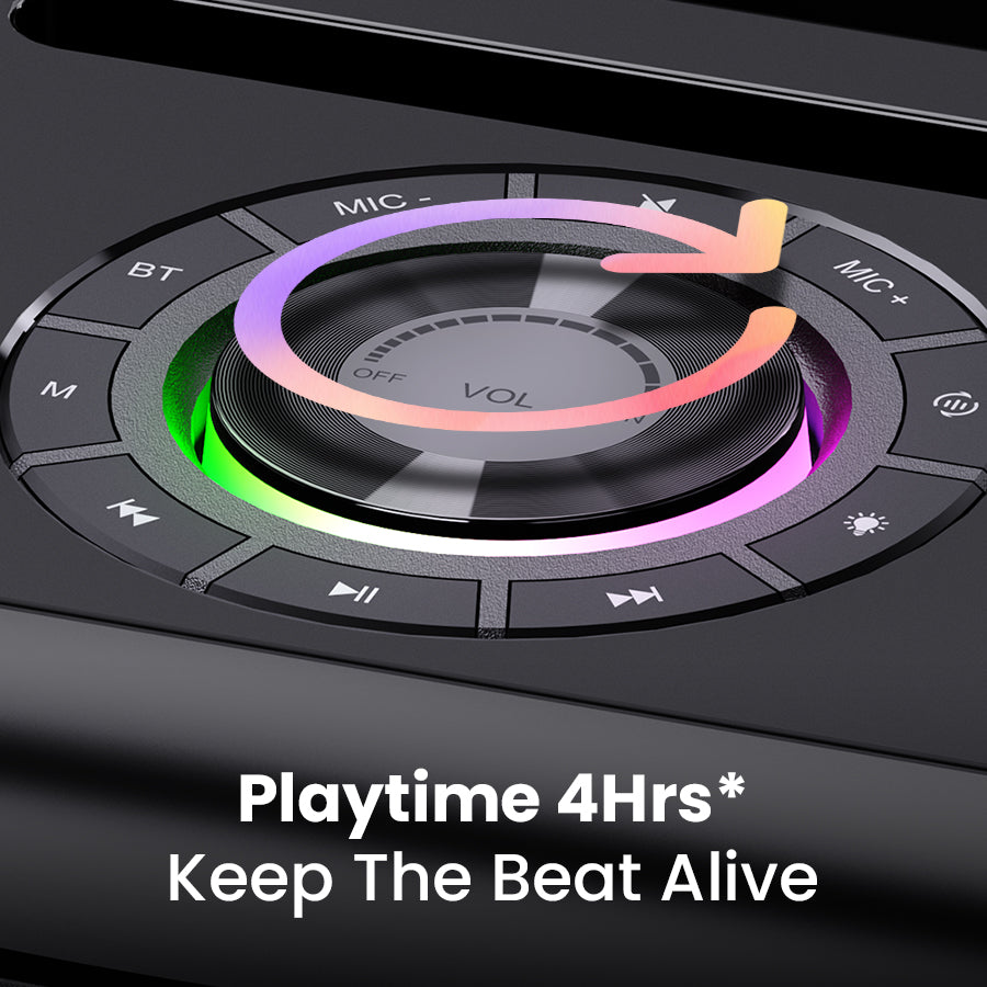 Bluetooth speaker with 80W sound output, 4-hours playtime, 8*1 deep bass woofer, RGB Light, one wireless karaoke mic