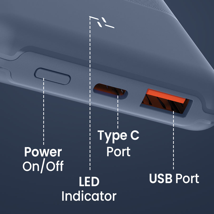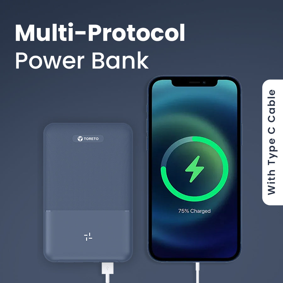 The Toreto Power Tint 10 power bank includes a Type-C port and a USB port for charging multiple devices simultaneously.