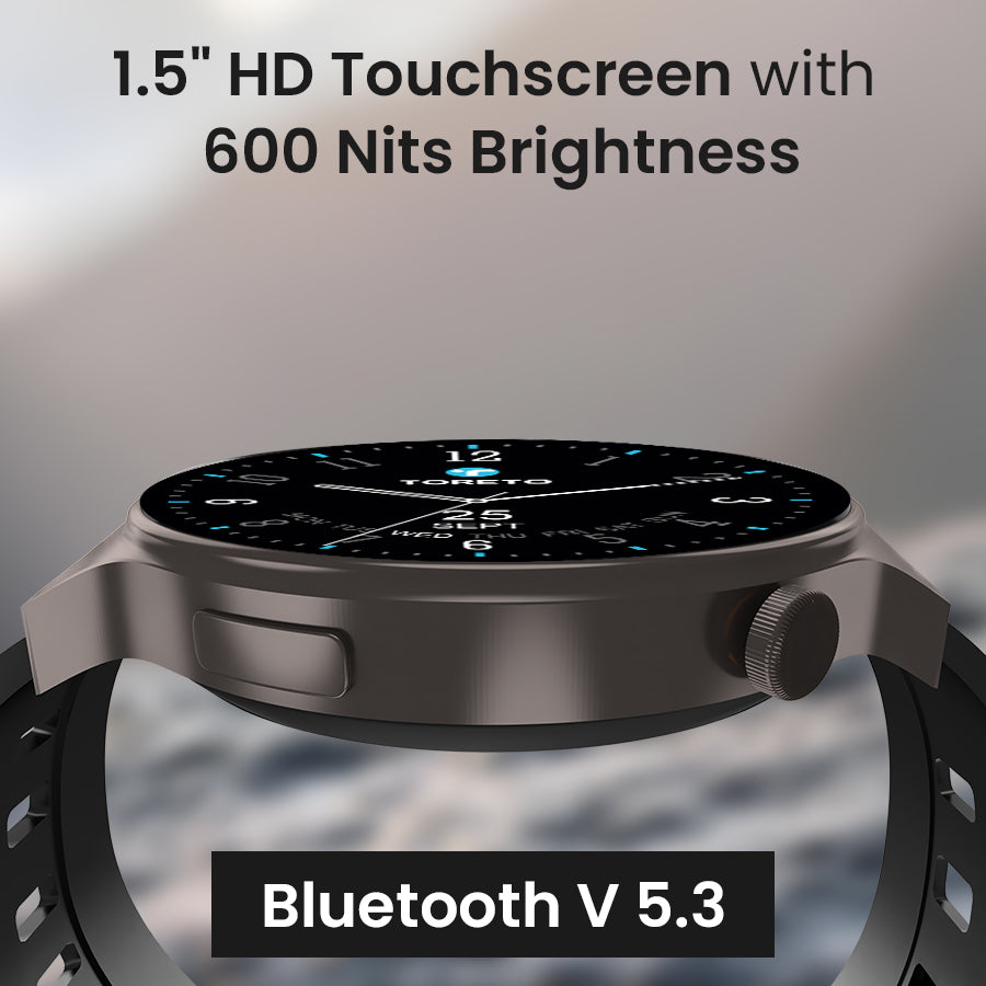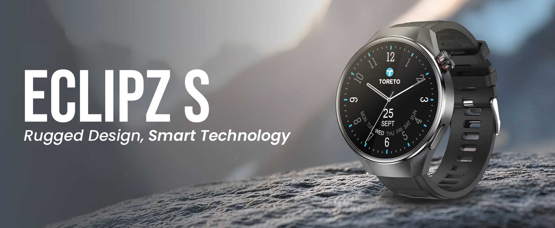The Toreto Eclipz S smartwatch is equipped with Bluetooth version 5.3, offering faster pairing, stable connectivity, and efficient battery usage across both Android and iOS devices.