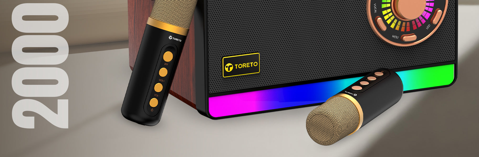 Yes, the Toreto Jambox Bluetooth speaker includes dual wireless microphones with 7 unique voice modes, making it suitable for interactive and karaoke sessions.