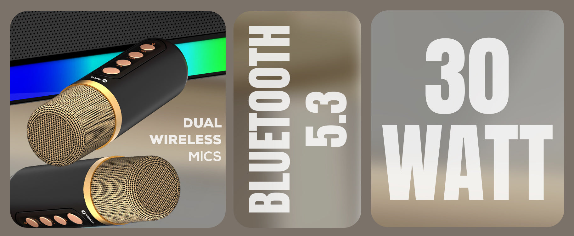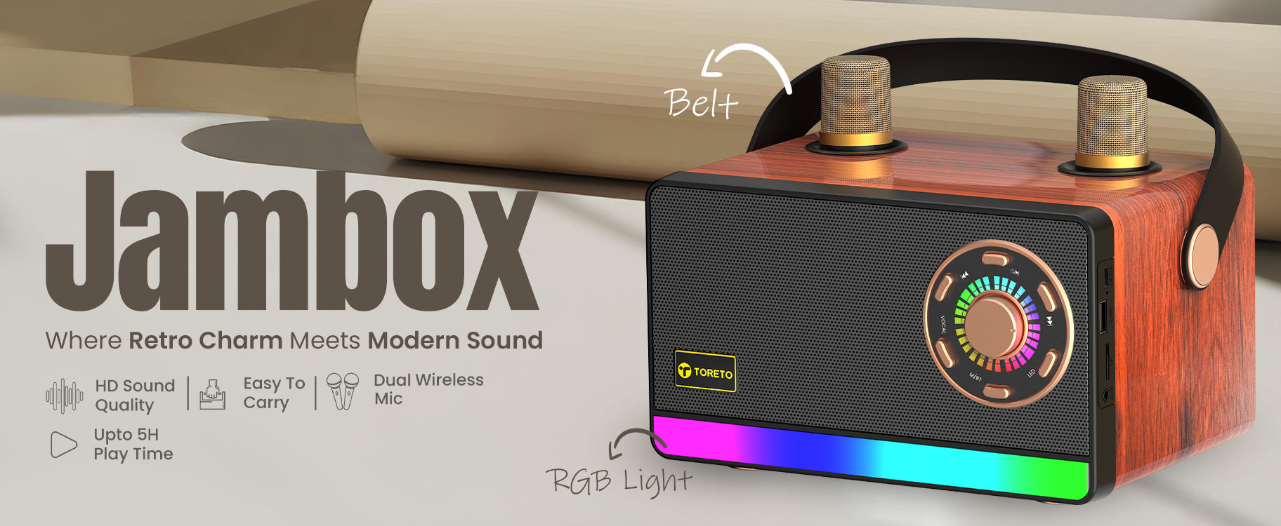 The Toreto Jambox Bluetooth speaker comes with Bluetooth v5.3, offering a stable wireless connection with up to 10 meters of range.