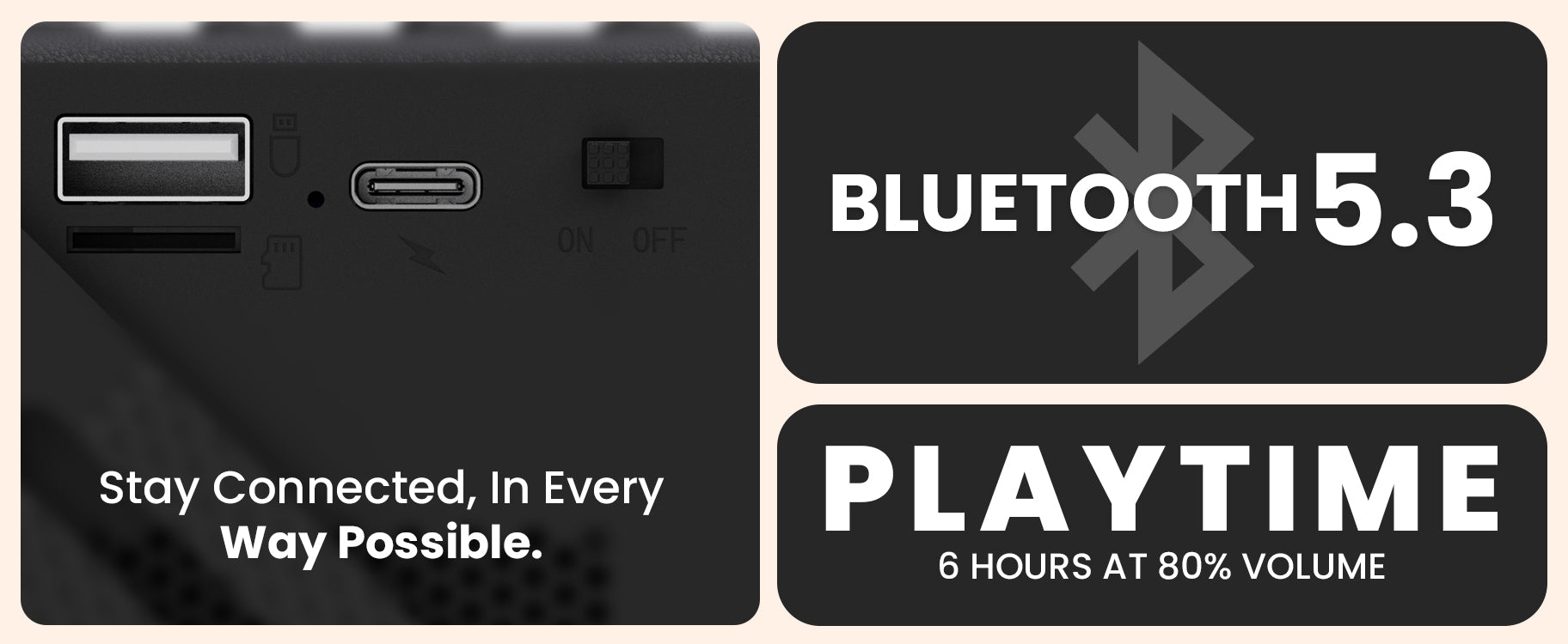 Connectivity: AUX, TF Card, USB Port, Type-C