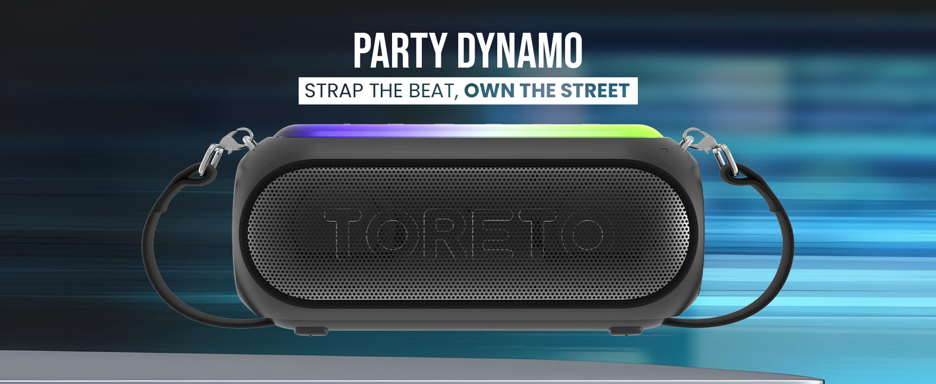 The Toreto Dynamo portable speaker features Bluetooth v5.3, ensuring faster pairing, low latency, and a stable wireless connection for uninterrupted music playback.