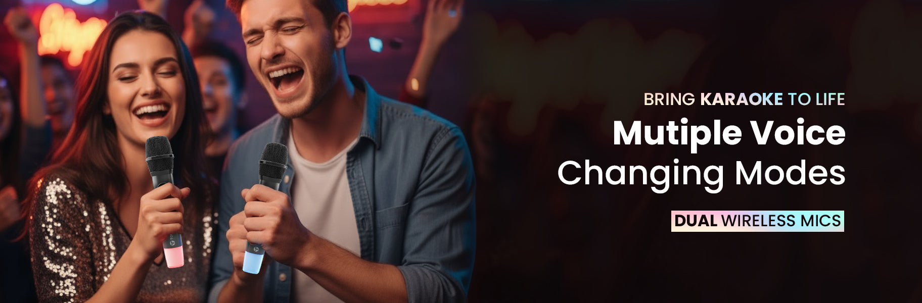 Karaoke: Dual Wireless Mic with Multiple Voice-Changing Modes