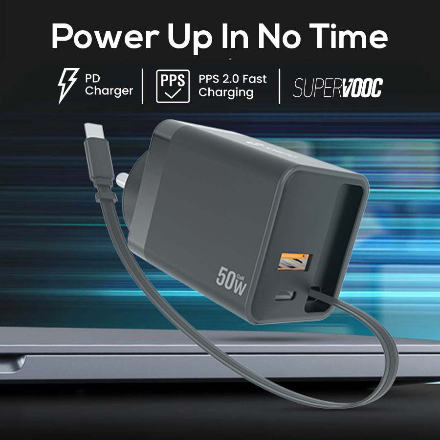Power Output: 50W Charger (25W A+C, supports SuperVOOC, PD, PPS 2.0