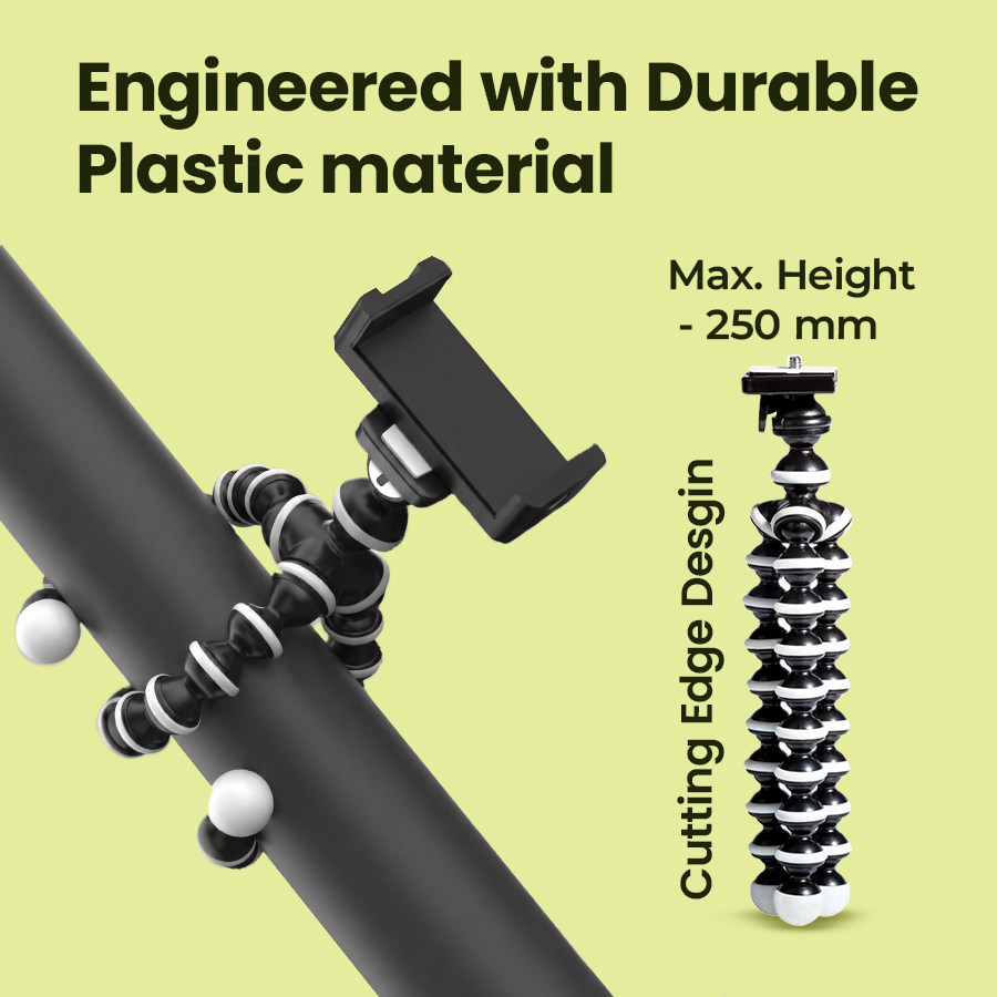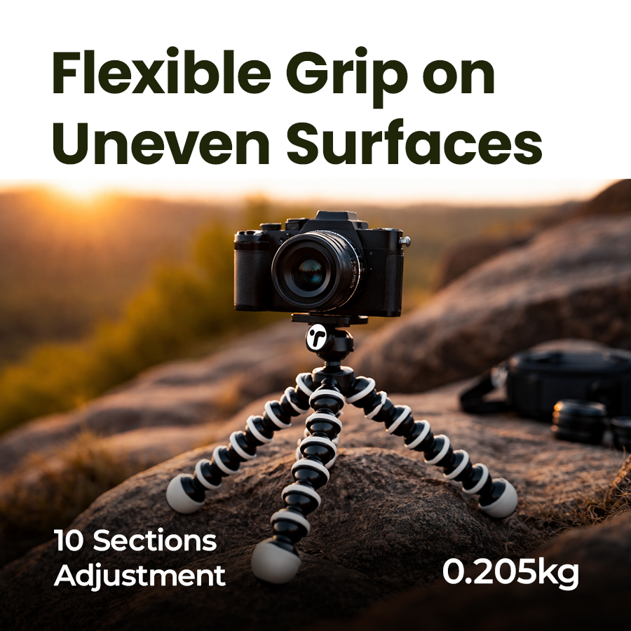 The flexible legs can be bent around poles, branches, or handles. High-friction rubber rings on each joint provide a secure grip to prevent slipping.