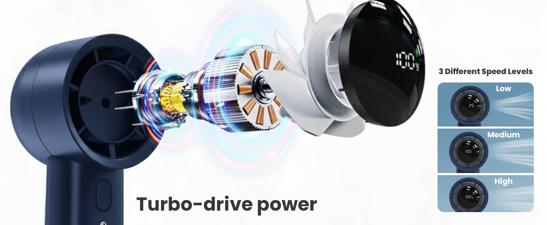 Airflow Performance: Powerful and efficient blades with turbo drive power