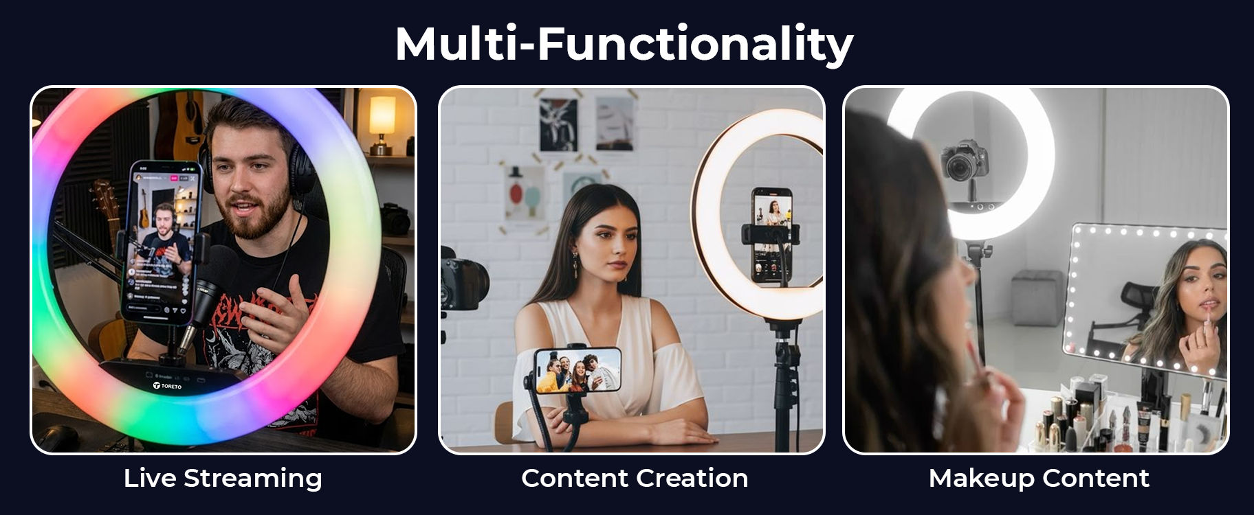 - Creator Friendly: Ideal for streaming & makeup.