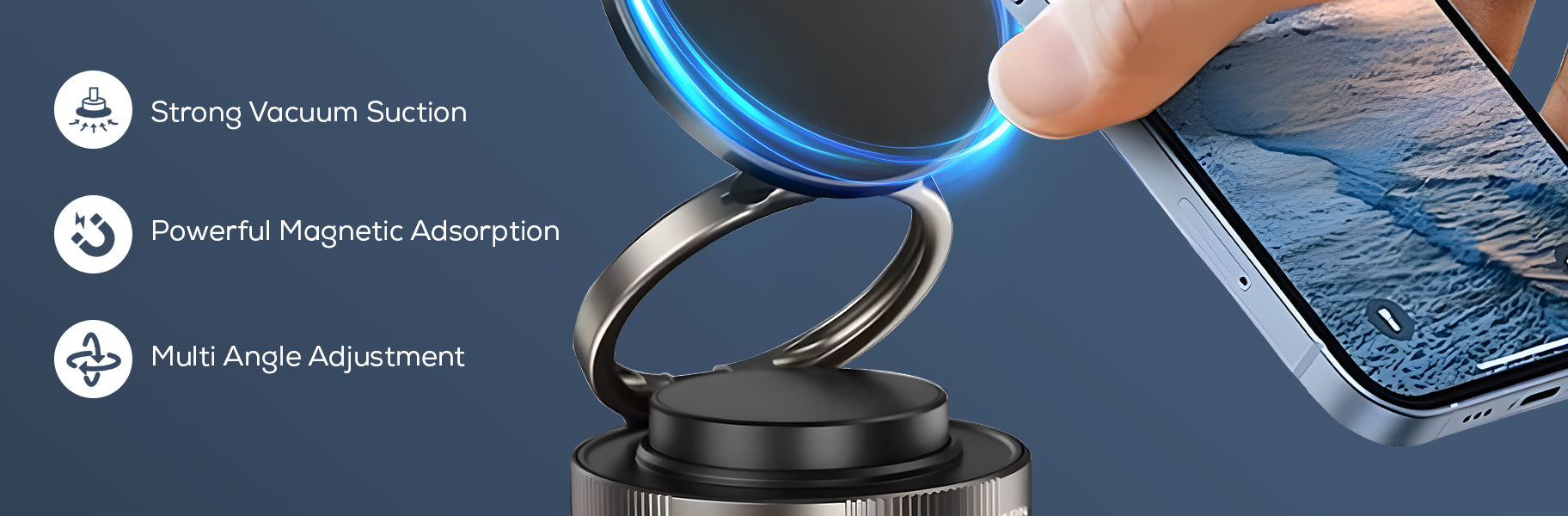 360° Vacuum Magnetic Holder: Provides strong grip and secure mounting for your smartphone.