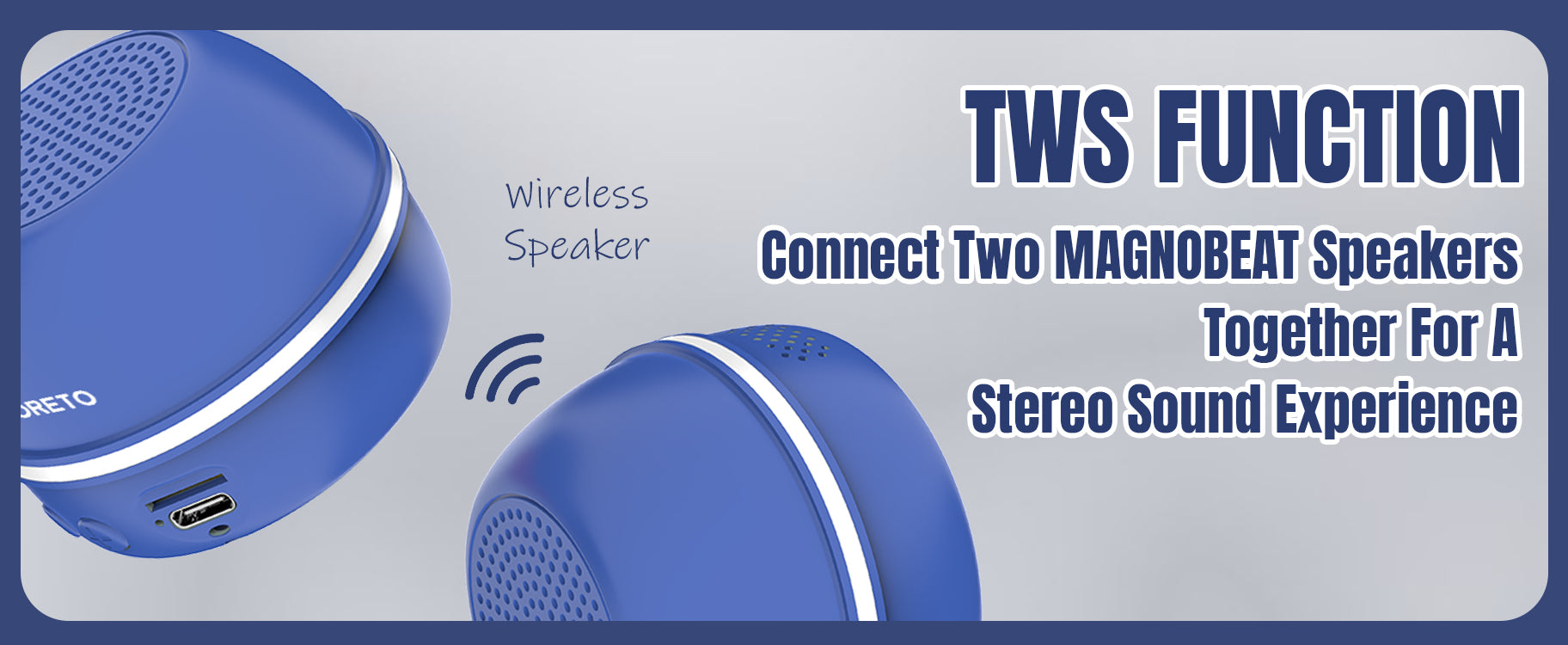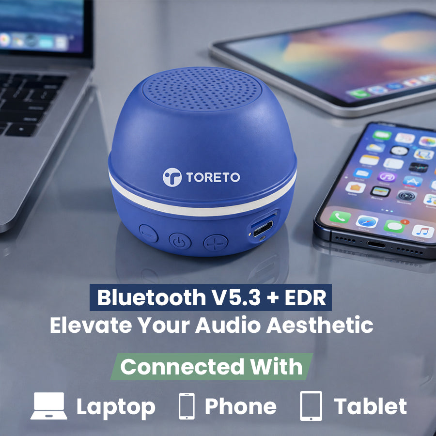 The Toreto MagnoBeat Bluetooth speaker supports Bluetooth v5.3 for stable connections, quick pairing, and smooth audio streaming.