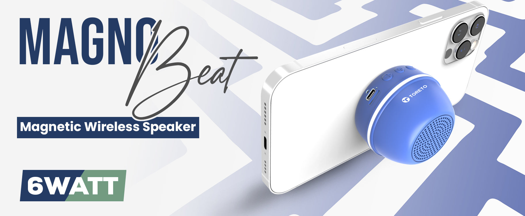 The Toreto MagnoBeat portable Bluetooth speaker features a built-in magnetic ring for secure attachment to metal surfaces.