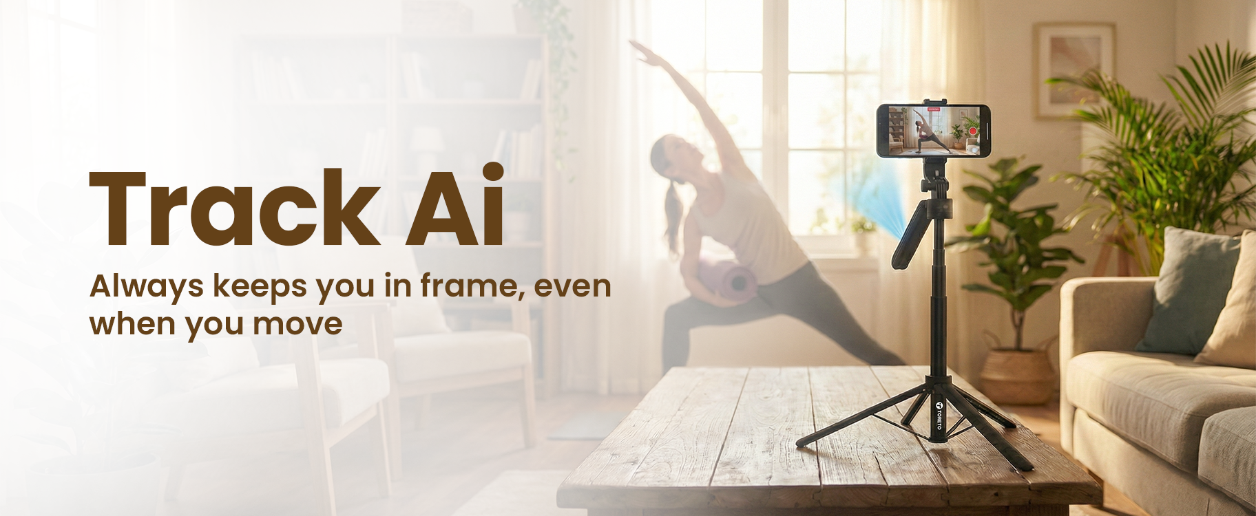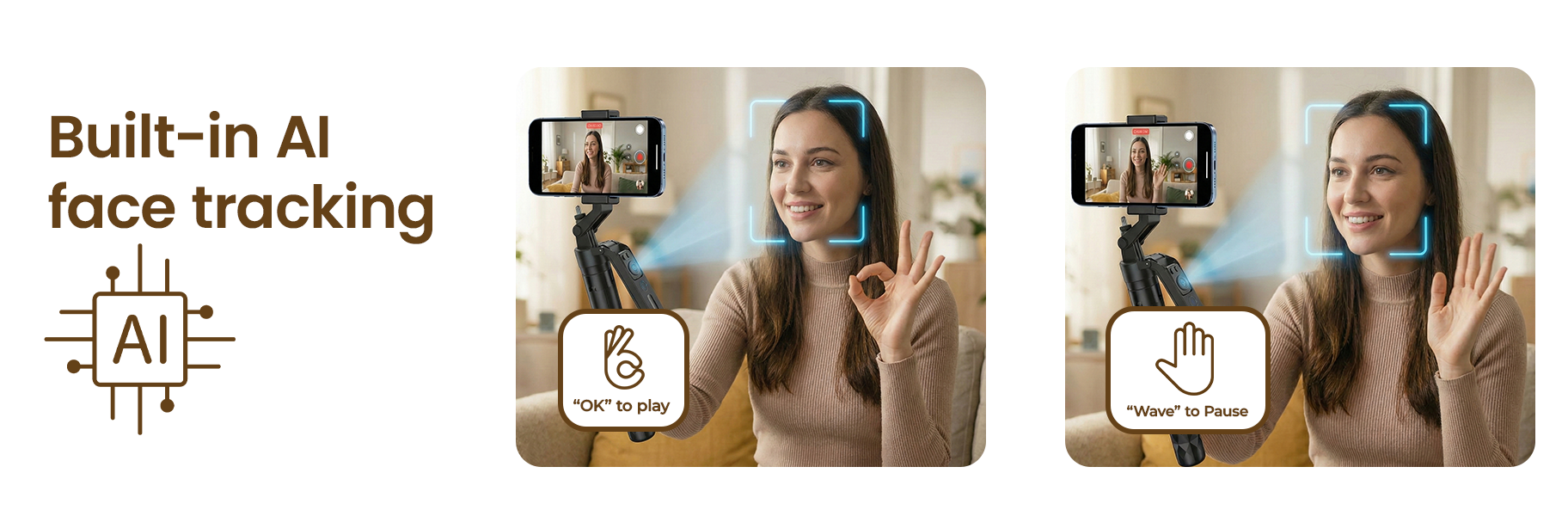 360° AI auto-tracking mount with gesture control and 8-hour battery. No app needed; universal 1/4" tripod mount for all smartphones.