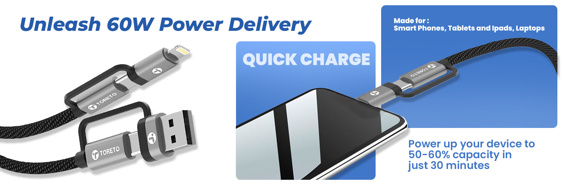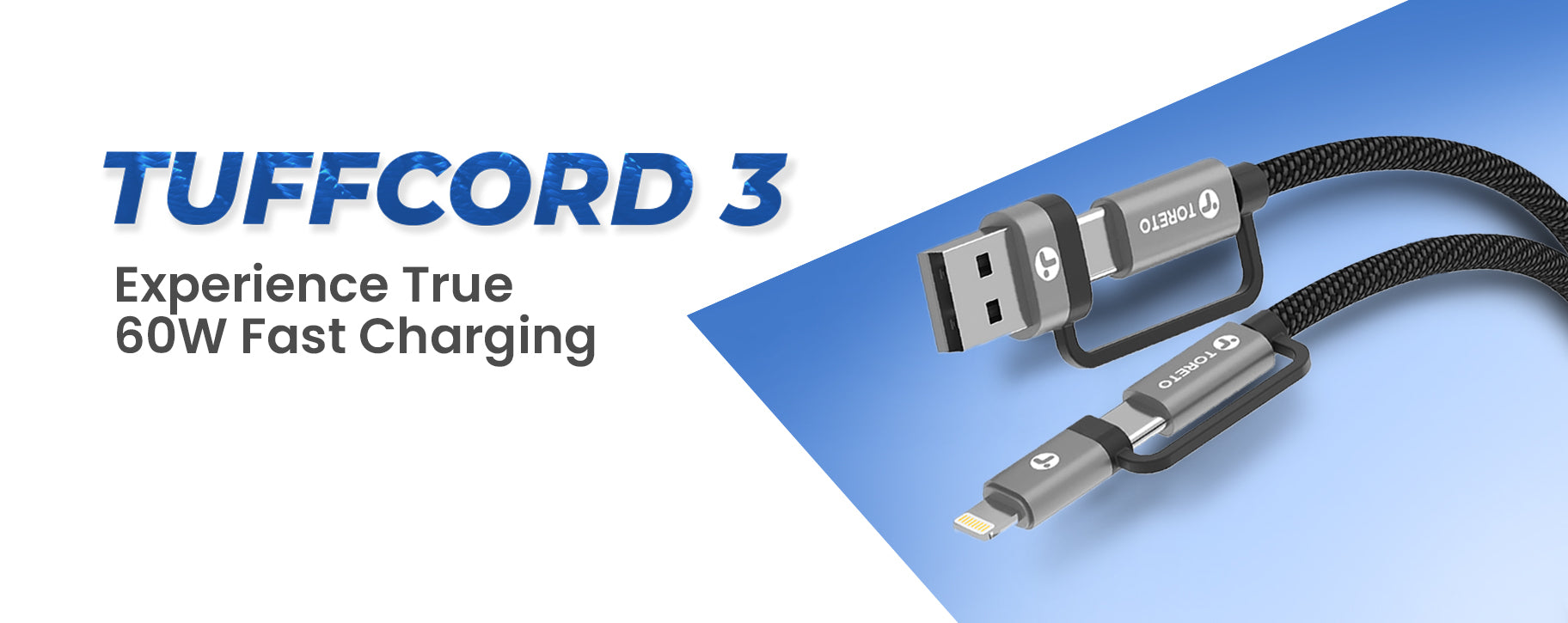 The Toreto TuffCord 3 cable supports up to 60W fast charging for compatible devices.
