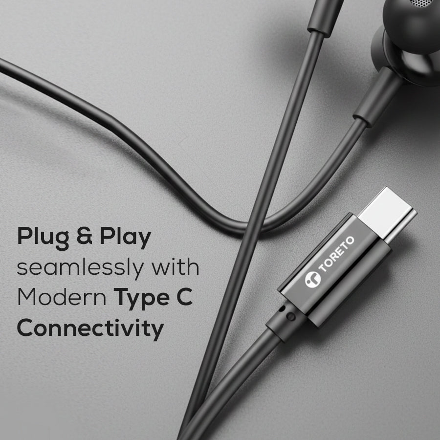 Wired earphones with 13mm Drivers, Deep Cinematic Audio, Magnetic Earbuds with Snug Fit, In-line Microphone, 1.2m Cable Length, Type-C Connector, Universal Compatibility